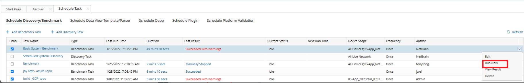 - On the Schedule Discovery/Benchmark tab, click Add Benchmark Task.