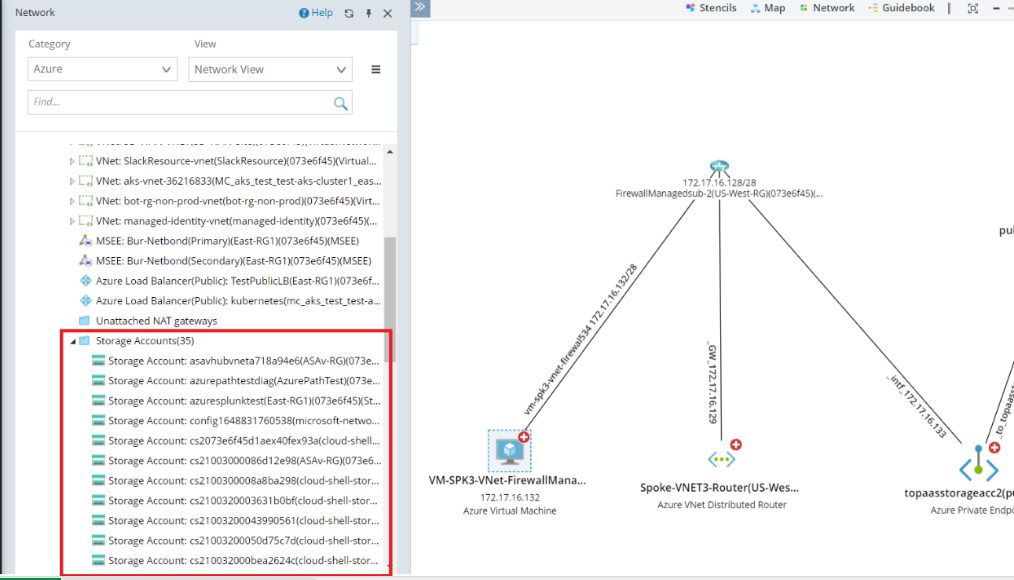 Azure Platform as a Service (PaaS) provides a framework that developers can build on to develop or customize a variety of cloud-based applications. NetworkBrain can show the visibility about various PaaS services like database and topology between different Service Endpoint, Private Endpoint and various PaaS services. Also, the path feature can show the end-to-end traffic flow hop by hop from Azure or On-Prem server to the destination PaaS service, which can be used for issue troubleshooting and network traffic analysis, planning, and optimization.