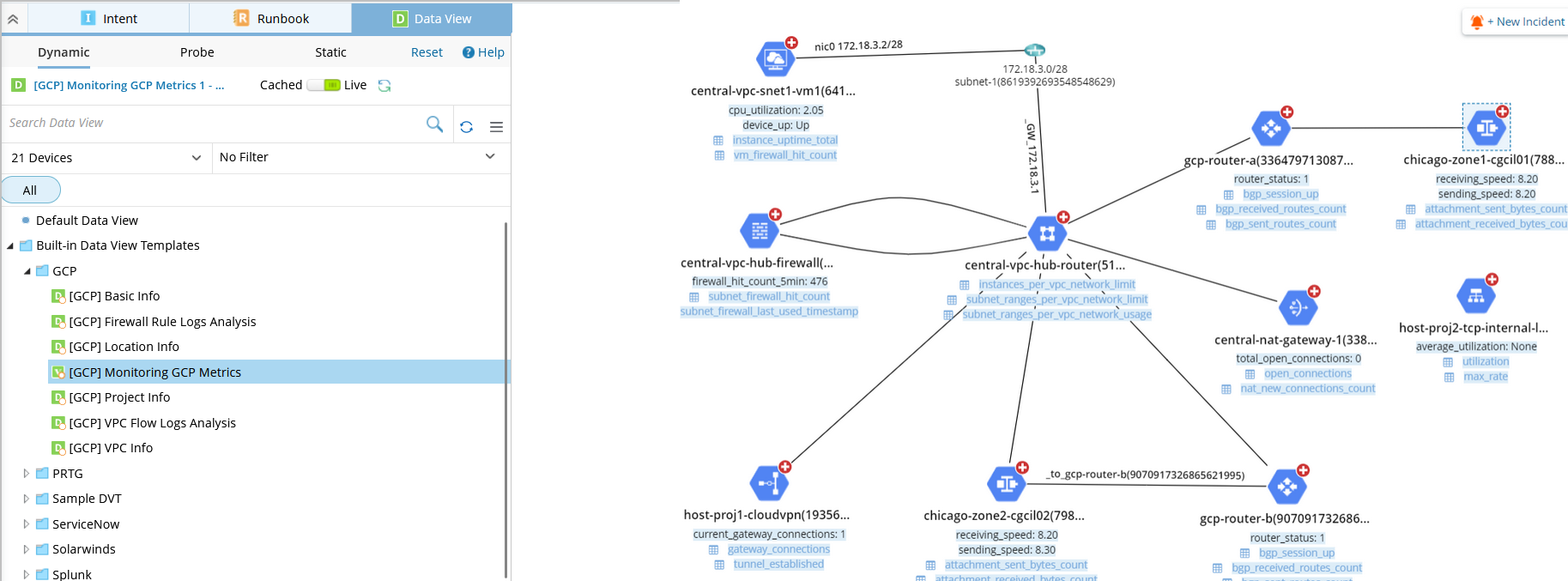 This DVT displays the pre-defined GCP Metrics for different network objects. Customize or modify it from Date View Template Management page.