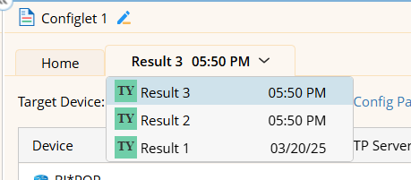 - View Config Parser Variable: The config parser variable matched with the current device is shown in the Configlet Result Area.