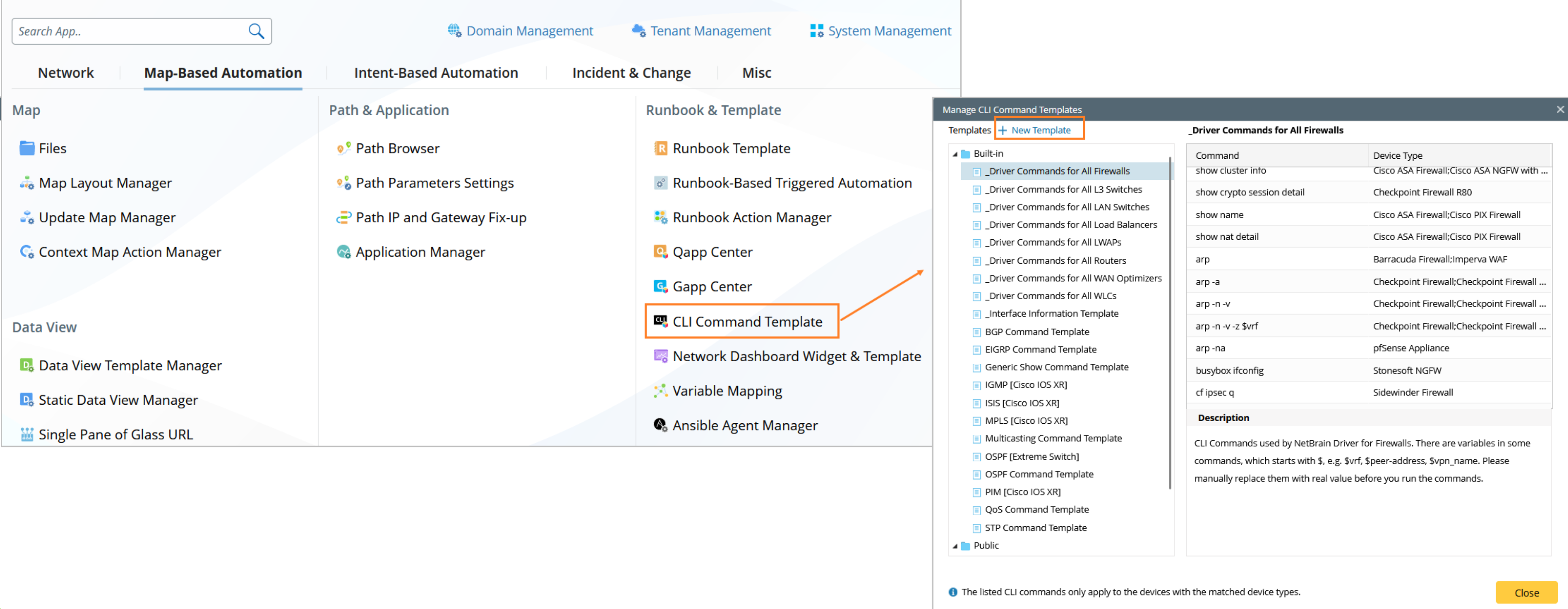 Note: You can add different device types for a single CLI command in different templates. When you add duplicate commands by loading templates into a task, the device types defined in different templates will be combined.