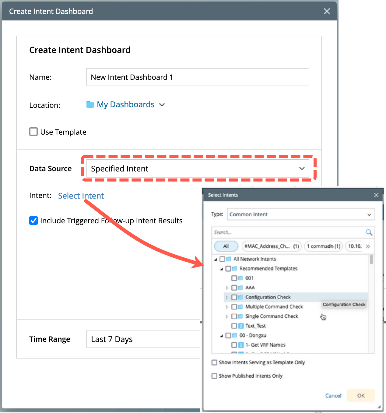 Intent Dashboard provides an easy way to create a dashboard to view thousands of Intent results. To create a dashboard: