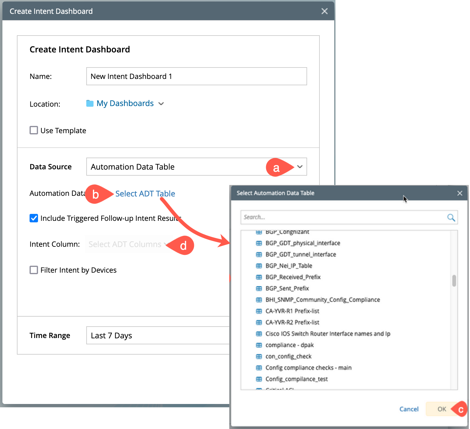 NOTE: The selected devices will match the devices in the Device Key Column. And the intents from the corresponding intent column of the matched ADT rows will be used as inputs for the Dashboard. |