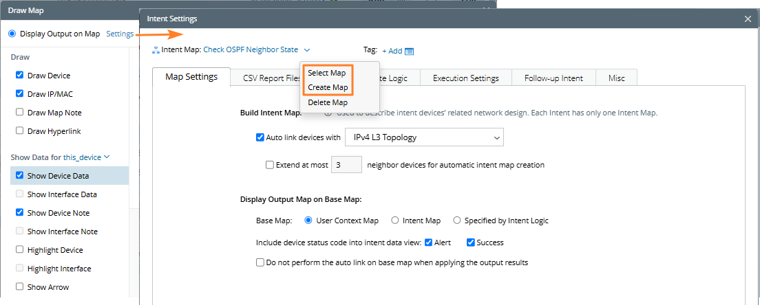 - In the Create Intent Map dialog, click the intent map settings link.