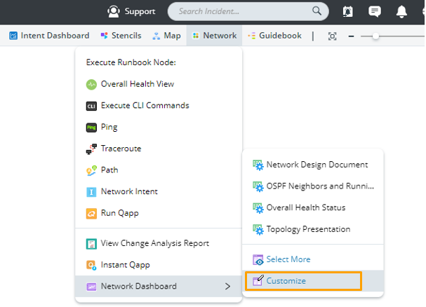 - On a map page, click Network>Dashboard > Customize from the map toolbar.
