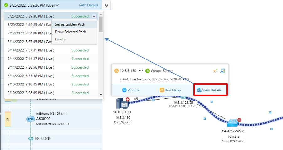 Golden Path is a traffic path when your network is healthy. The system automatically compares the results of the verified paths with golden paths when it periodically verifies them.