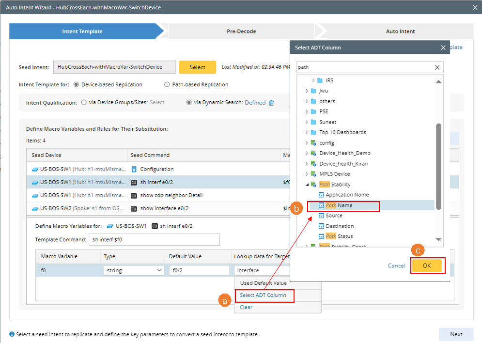 Note: A path NIT takes path parameters such as source/destination IP as value of the macro variables defined in intent template.