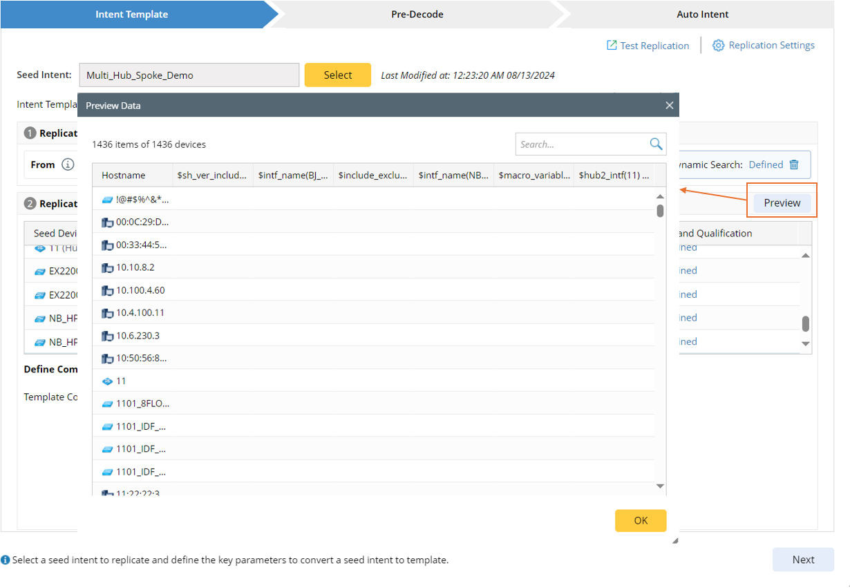 - Preview (This functionality only applies to device-based replication): When the macro variables are bound with ADT columns, Click Preview in the Define Macro Variables and Rules for Their Substitution block to preview the corresponding value assigned to different macro variables in all selected ADTs for different devices.