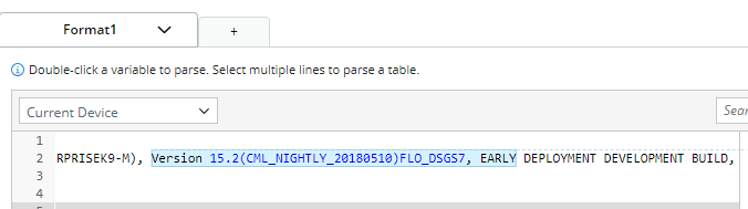 Tip: The system uses the two words before and after "15.2 (CML_NIGHTLY_20180510FLO_DSGS7)" as keywords to generate the line pattern Version $version, EARLY, using the anchor word closest to the variable as the variable name (Version and EARLY in this example). If the word before or after the variable is "is", “was”, “on”, “of”, “with”, “at”, “under”, “for”, “in”, or “:”, the system will look for one word further.