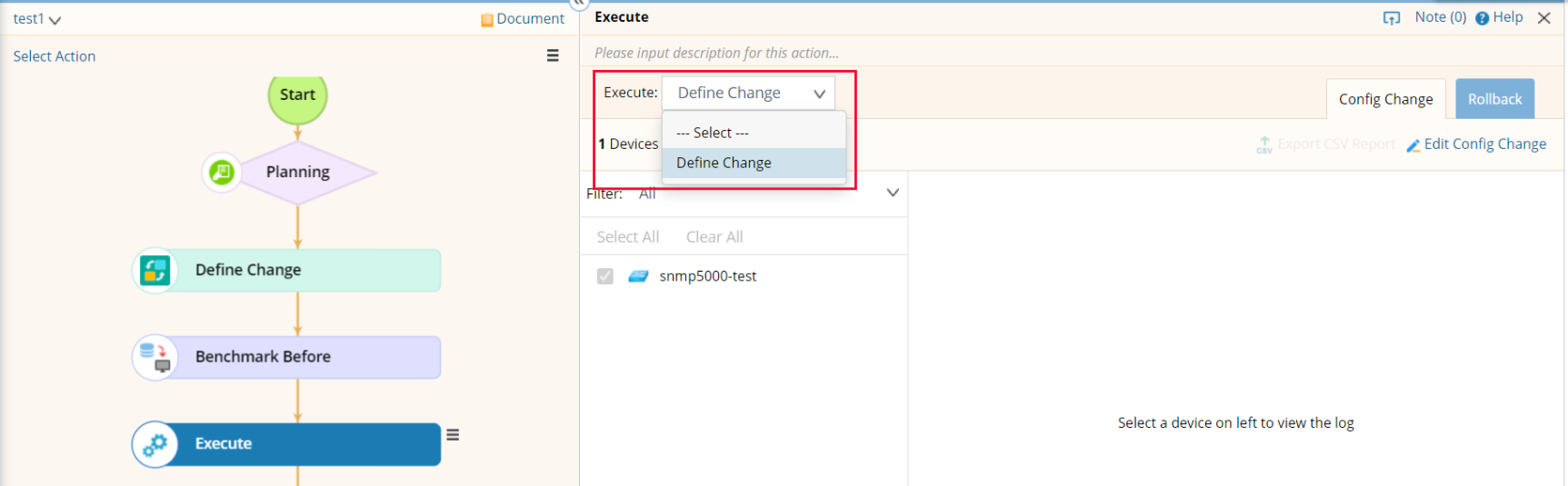 The Execute node is used to implement the defined changes on devices.