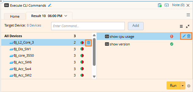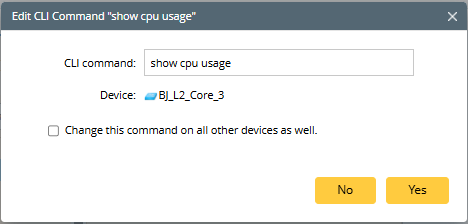 icon. - Click the pencil icon to edit a command. The major use case is editing the variable defined in command to concrete value. Moreover, a check box is also provided for you to select to change the same command on all devices (the check box is not selected by default).