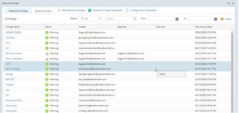 A network change can be deleted as a single task or batch. Users can select multiple tasks and can delete them with one click.
