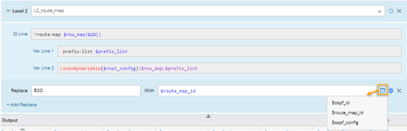 - Click + Add Replace to define replacement for Level 3. Replace B2O in the line patterns of Level 3 with $prefix_list.