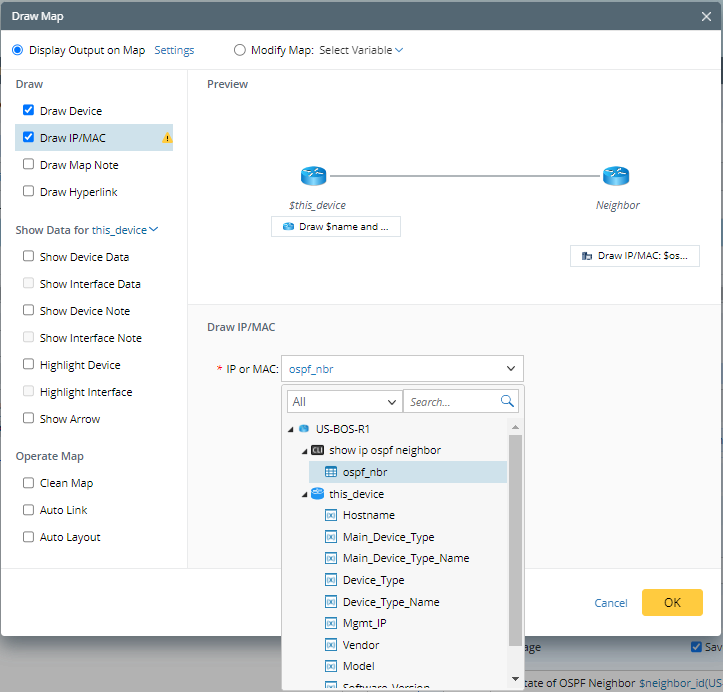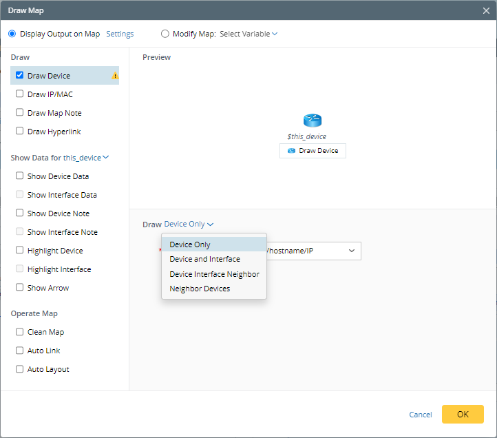 - Device Only: Only draw the device on a map, and its interface and neighbor are not included.