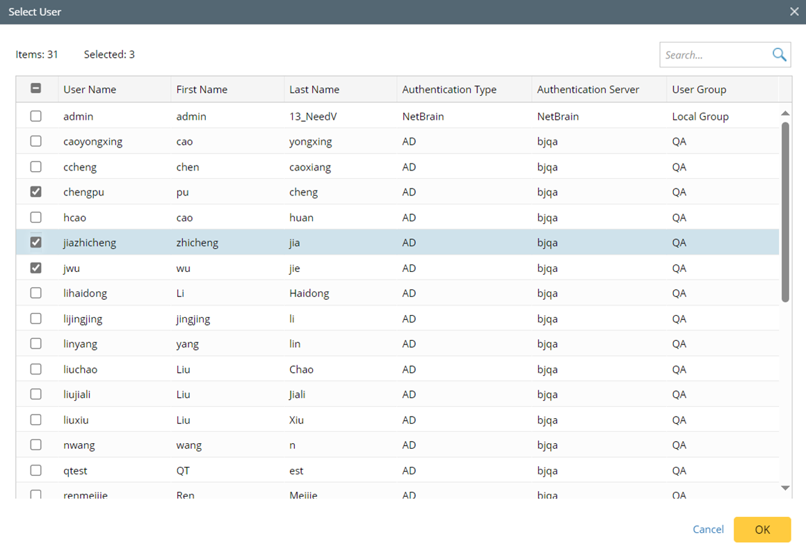 - Click + Add, then select users in the pop-up Select User dialog. The selected users will be added to the table below as excluded user accounts. Two-factor authentication does not apply to these excluded user accounts.