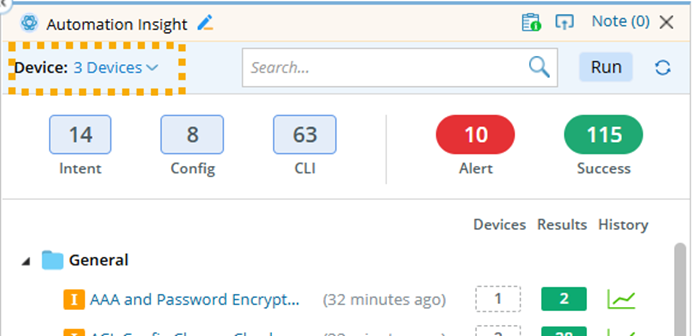 Tip: Users can execute the displayed automations by clicking Run. - (If necessary) You can also view results of non-map devices by selecting them.