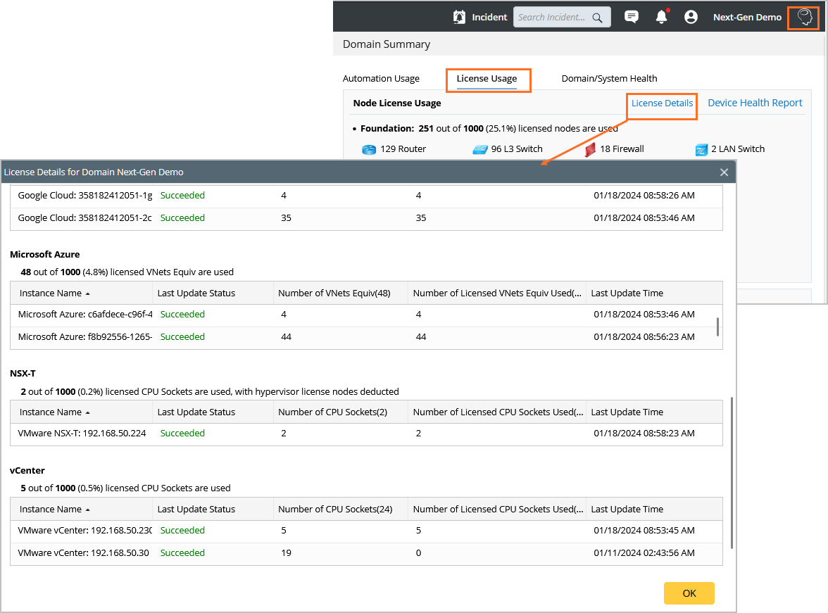 - Check the expected VNet number which should have been discovered and see if it exceeds the license limit.