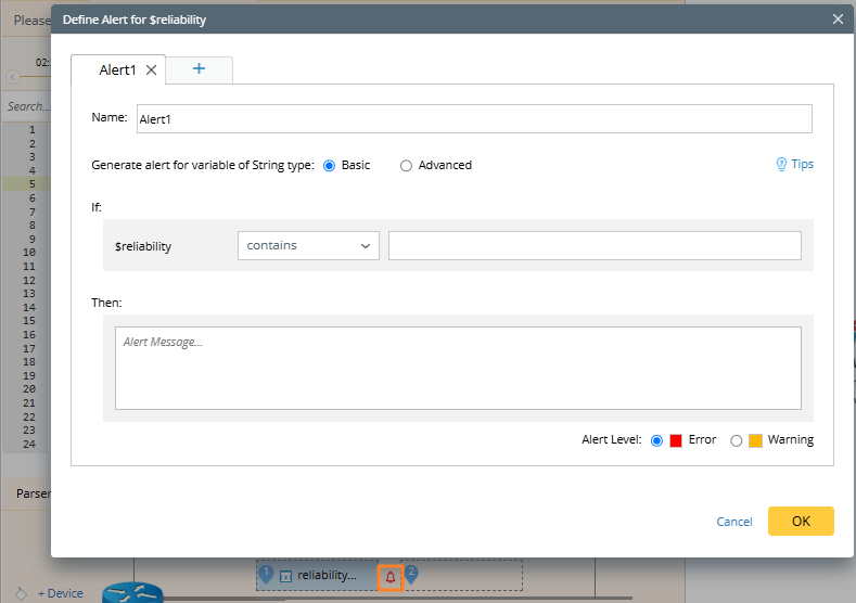 icon behind the device variable to define the alert. Click OK.