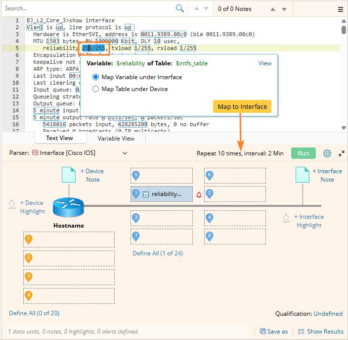 - Click a number value and Map to Interface to expand the definition area.
