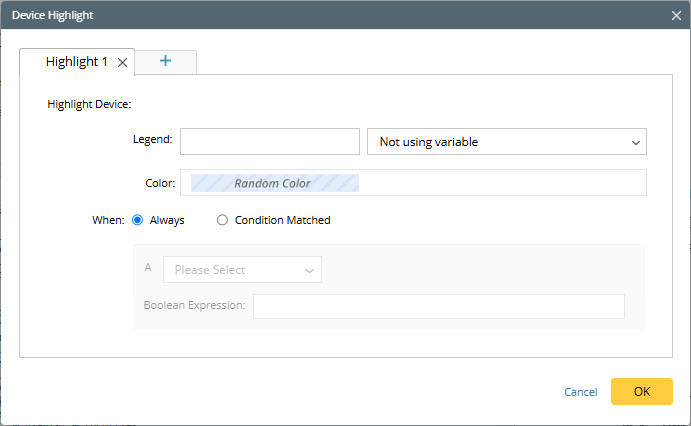 1) Click Device Highlight to use a random color to highlight the device.