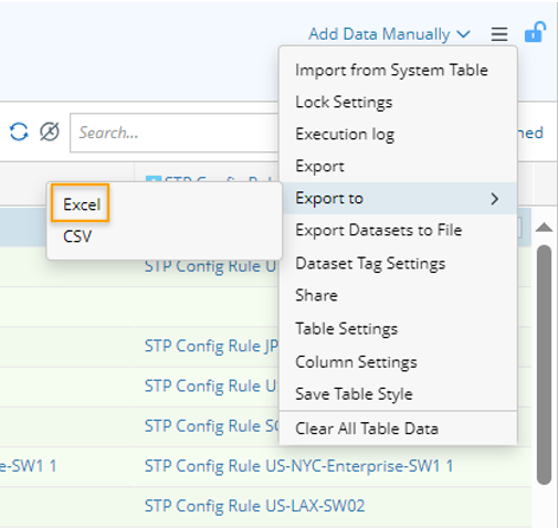 - Export ADT to Excel: Click Export to from the drop-down menu of an open ADT, then select Excel to export the file to Excel format. The exported Excel file will be automatically saved to the default location for storing downloaded files (for example, C:\Users\<your username>\Downloads).