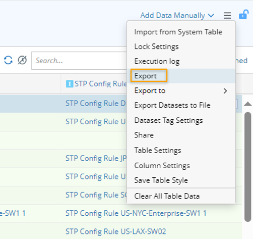 Alternatively, you can click Export from the drop-down menu of a target ADT in the Folder Tree of the Automation Data Table Manager to export the ADT.