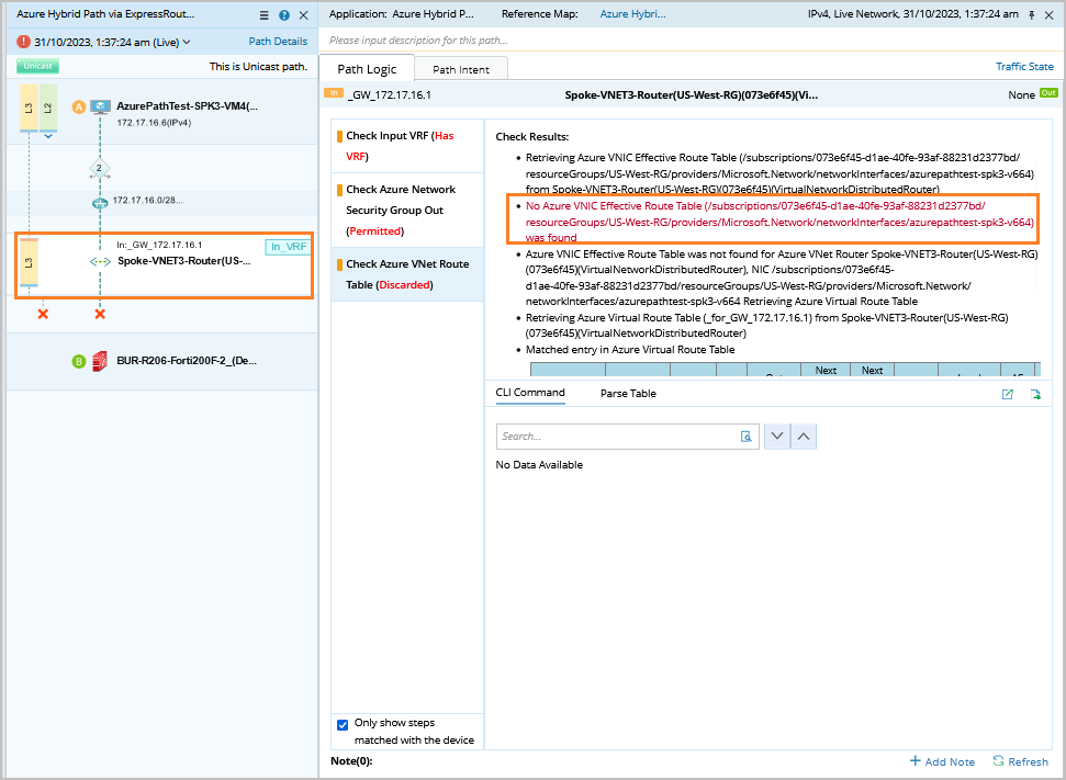 - Check whether an error message contains "No Azure VNIC Effective Virtual Route Table was found".