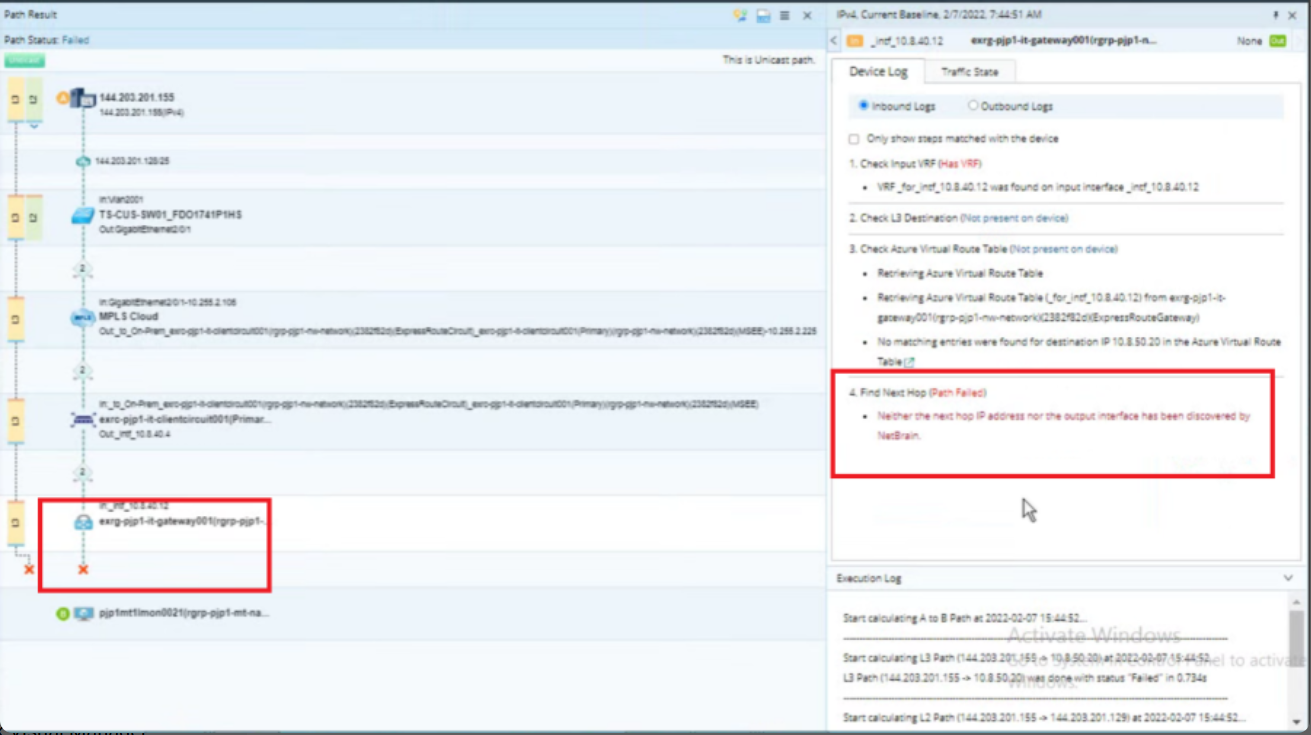 If the path failed, check the node/device which causes the failure and find the cause message in the path logs details. If you see Path Failed message in Find Next Hop procedure, follow the instructions below.