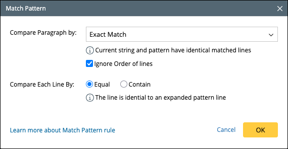 You can configure the Match pattern logics in the option Via Logic.