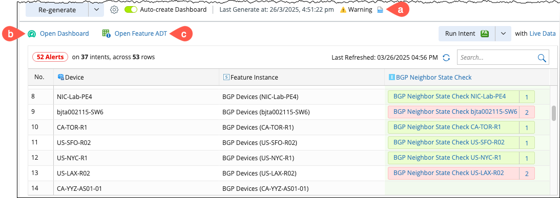 - Click Generate to replicate the created intents to the reference cluster selected as the target device scope. A window will pop up displaying the list of the golden intents defined under the current Golden Rule.