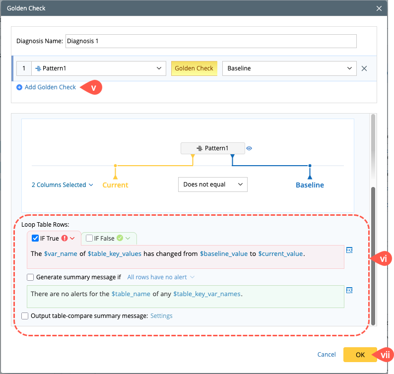 - Click Undefined in the Golden Check column for defining the diagnosis condition and message.
