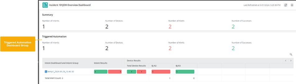 - The intent dashboards related to the same incident will be added to a Triggered Automation dashboard group by default.