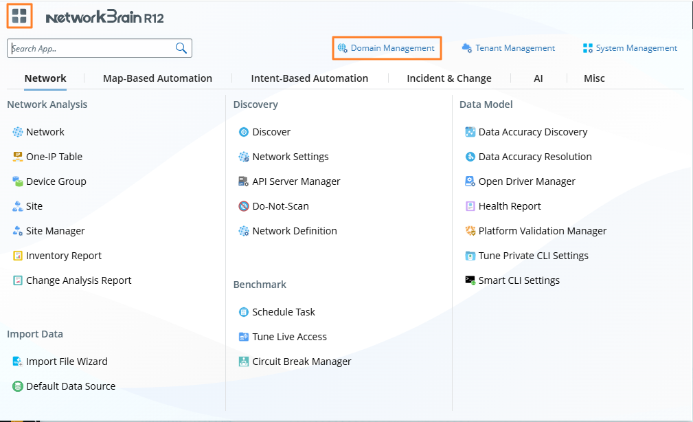 at the upper-left corner and you can find Domain Management at the bottom of the menu.