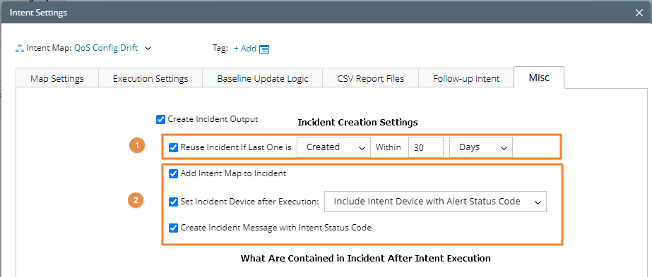 - Reuse Incident check box — indicates whether to use an existing incident from the second execution of NI. When the condition is not met, a new incident will be created. If it is not checked, a new incident is always created.