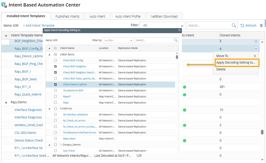 Apply Intent Decode Setting to: Click Apply Intent Decode Setting to from the drop-down menu of an NIT, select some NITs to apply the decoding settings of the current NIT to the selected NITs.