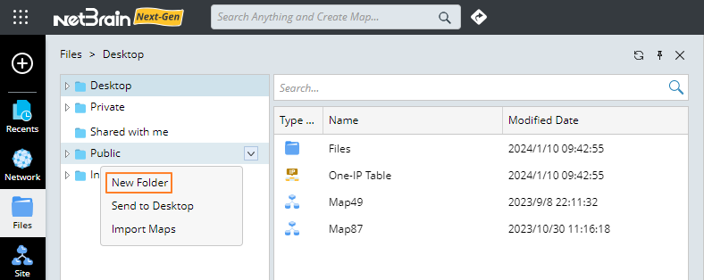 - Site maps — select the My Network folder generated under the specified folder.