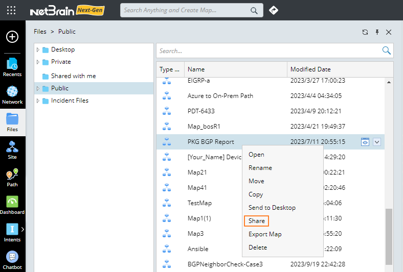 Share a Map or Dashboard from Files