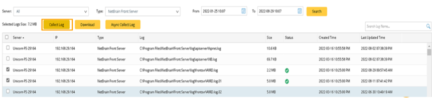 - Select log items and click Collect Log. The status will change to