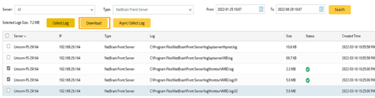 - Download the collected logs.