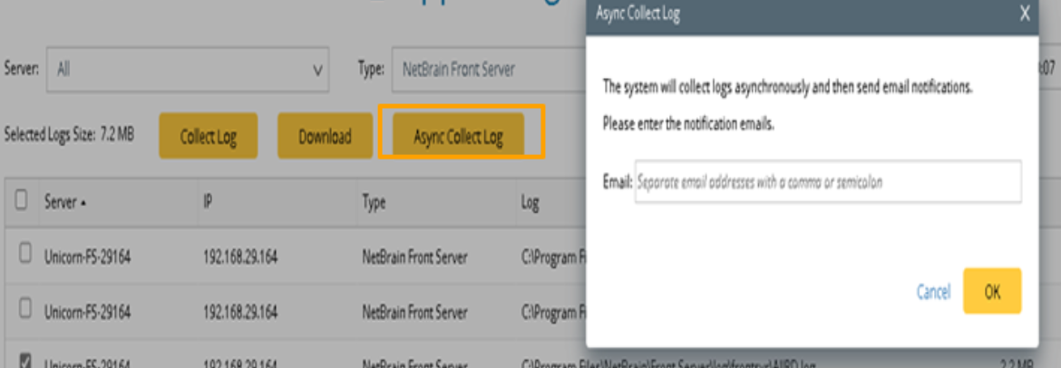 - Click Async Collect Log, then enter an email address in the pop-up window.
