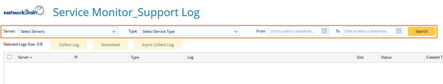 - Filter out desired logs by the server, service type and the period during which logs are generated.