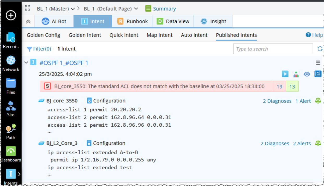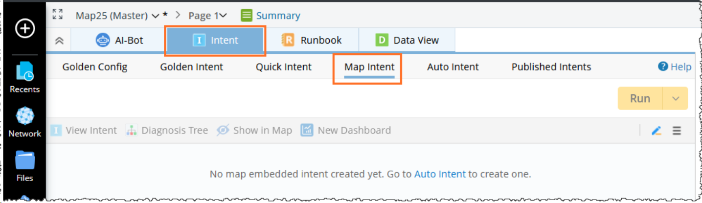 A power user can open a core site map and select a Network Intent in Template Mode (NIT) to create Map Intent for future network troubleshooting. See Create Map Intent for more details.