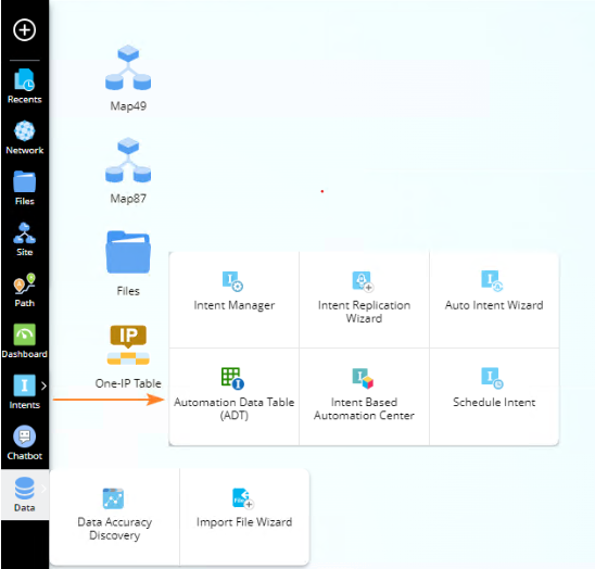 ![]() | Click it to view intent-related functions. See Intent Manager, Intent Replication Wizard, Auto Intent Wizard, ADT, Intent Based Automation Center, and Schedule Intent for more details,![]() | ||