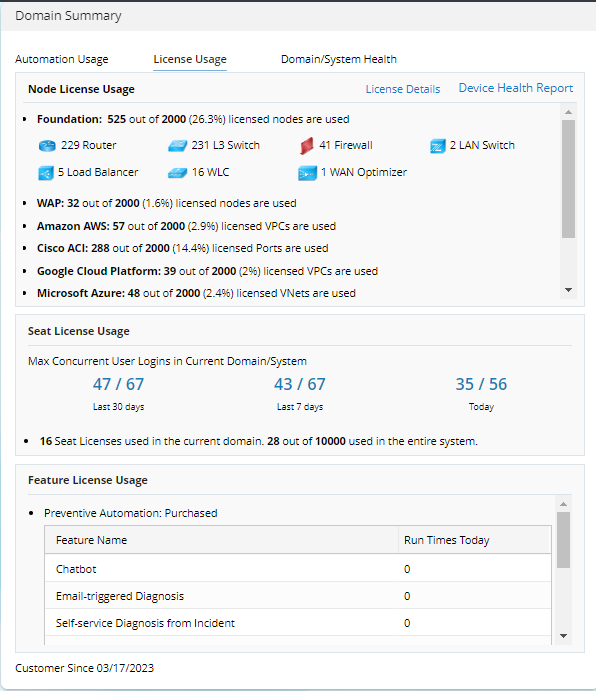 - The License Usage tab displays the usage of node license, seat license, and feature license. See Browse License Usage for more details.
