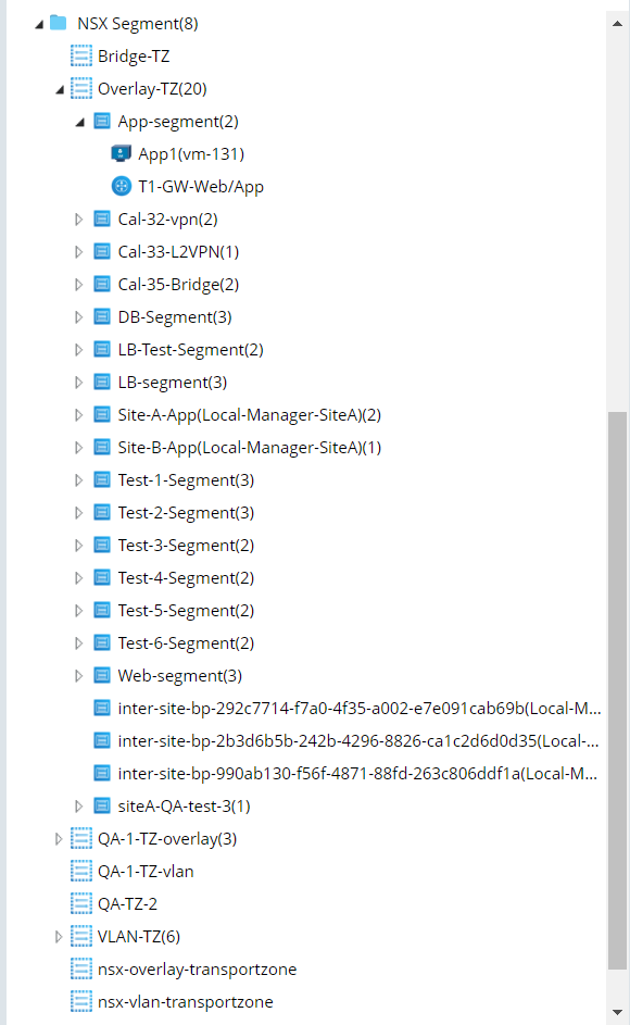 Under the "NSX Segment" menu, it shows the Transport Zones, what segments were built in each Transport Zone, and which Virtual Machine and Gateway were associated with the segment.