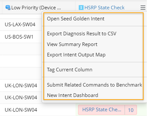 - From the dropdown menu of an intent column in ADT View, the following operations can be performed as shown in the screenshot below: