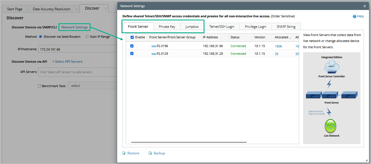 3) Click Network Settings to specify the proxies and credentials used in the discovery or keep it as default.