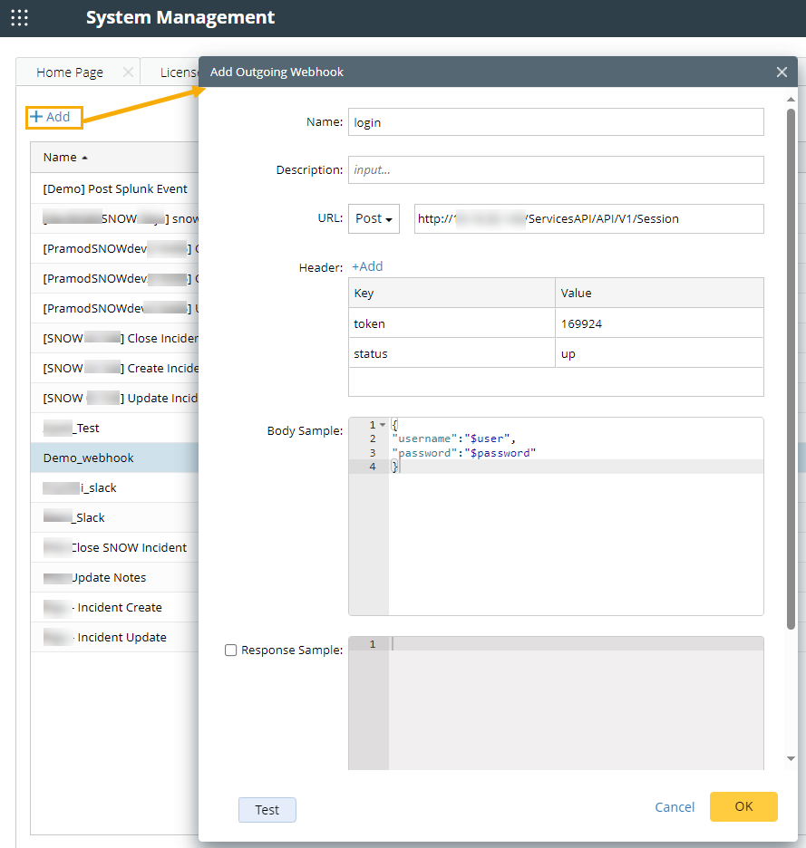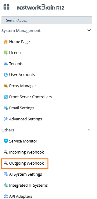 - Go to System Management Page > Outgoing Webhook.
