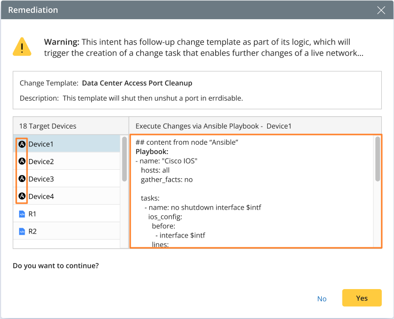 | Ansible Node | ![]() | The following change information for each device is displayed: