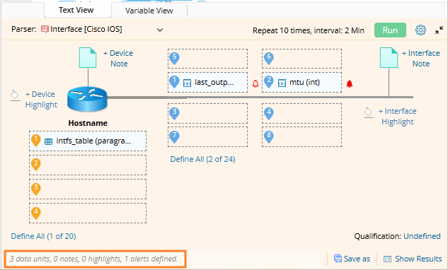 - When there is no definition, the texts will be displayed: No Data View or Alert defined. Please choose variable in Text View or Variable View.